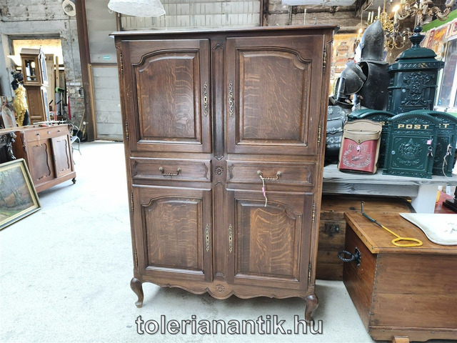 Neobarokk négyajtós akasztós polcos szekrényAntik szekrény - Vác (Pest) - 2026/02/13 Ár kérésre!Jó állapotú Mérete:219x58x200