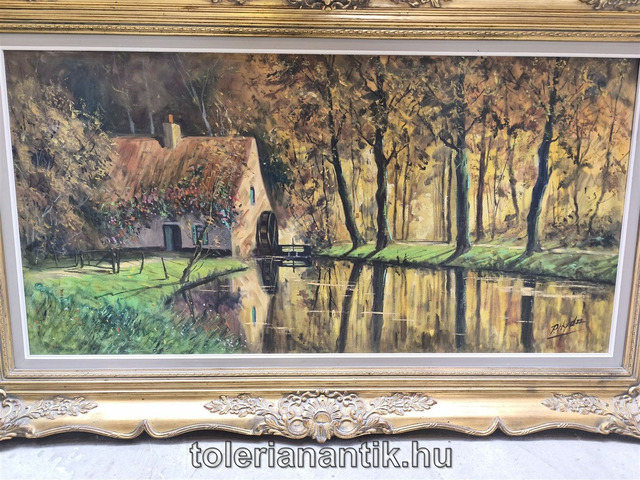 Ár kérésre! Arany blonderkeretes festmény (Vizimalom) Vác