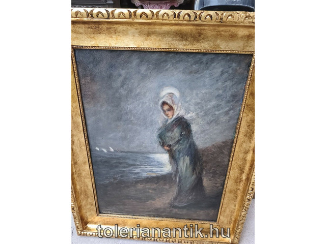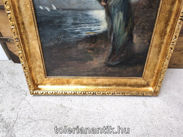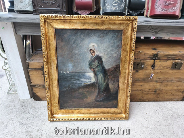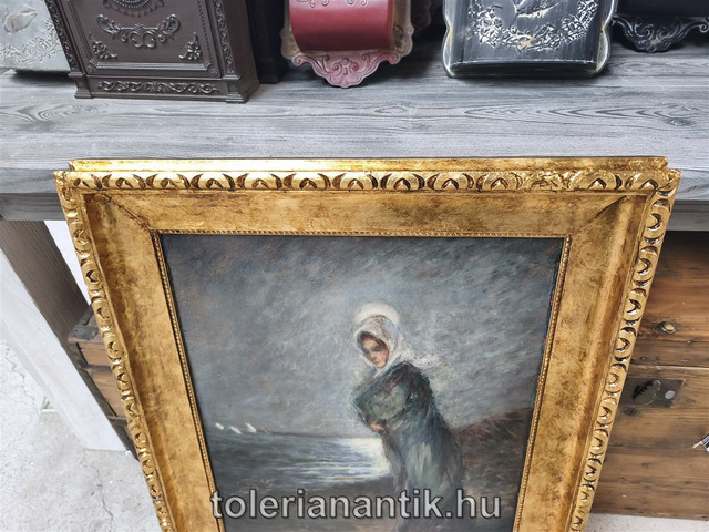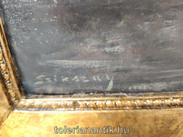 Ár kérésre! Szikszay Ferenc Hazavárás festmény arany ökörszemes keretben Vác