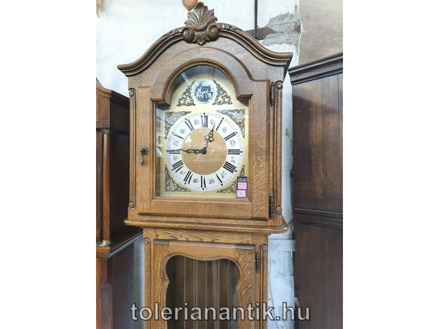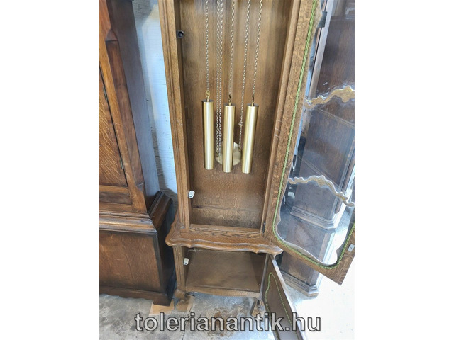 Neobarokk háromsúlyos negyedütős állóóraAntik, Régi állóóra - Vác (Pest megye) - 2025/05/12 Ár kérésre!Jó állapotú Mérete:43x22x213