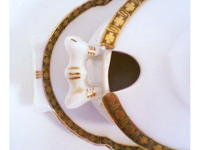 Áttört, aranyozott-fonott szegélyű virágos tálPorcelán, kerámia tál, csésze - Vác (Pest megye) - 2023/12/30 19.900 Ft4126/231201/FC/ARB Áttört, aranyozott-fonott szegélyű virágos tál: Mázas porcelán, kézi festéssel. Szép állapotban. Alján koronás „L” betűs jelzéssel. Méret: 6 x 25,5 cm Filigree bowl with gilded-braided border and flower pattern: Glazed porcelain, h...