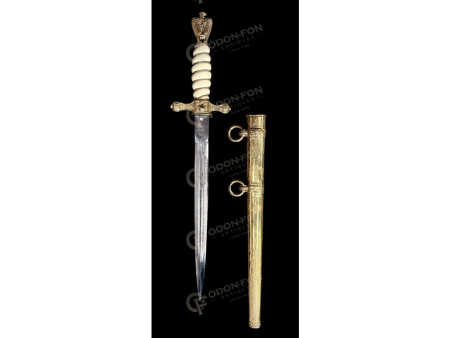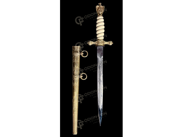 German gilt dagger copy: Solingen, E & F Hörster, with etched blade. In nice condition.