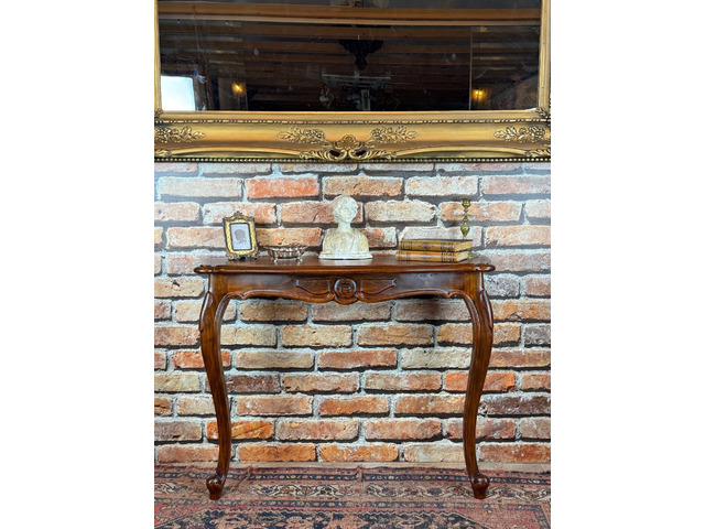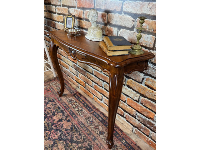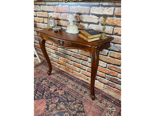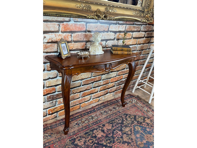 Frissen felújított, restaurált, kézi politúrozású konzol asztal.
