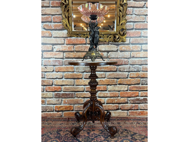 Barokk Konzol asztal.Antik asztal - Sződ (Pest megye) - 2026/02/24 75.000 FtBarokk Konzol asztal. Frissen felújított, restaurált, kézi politúrozású konzol asztal. Dúsan faragott, hajlított Cabriole lábbal. Faragott kávával. Hátulján "L" vassal felszerelt a falhoz rögzítéshez. Méretei: 90x30 x 69cm magas. Ára: 75,000Ft.-