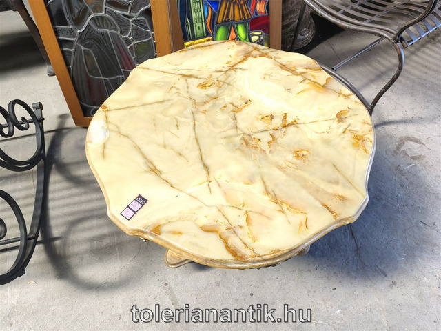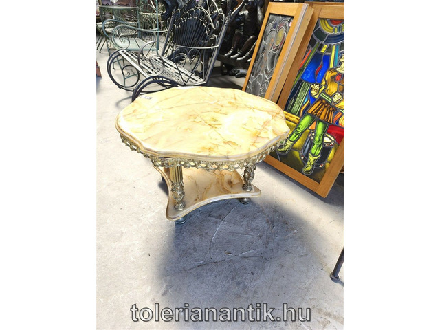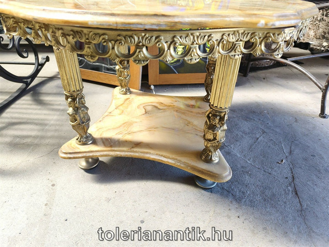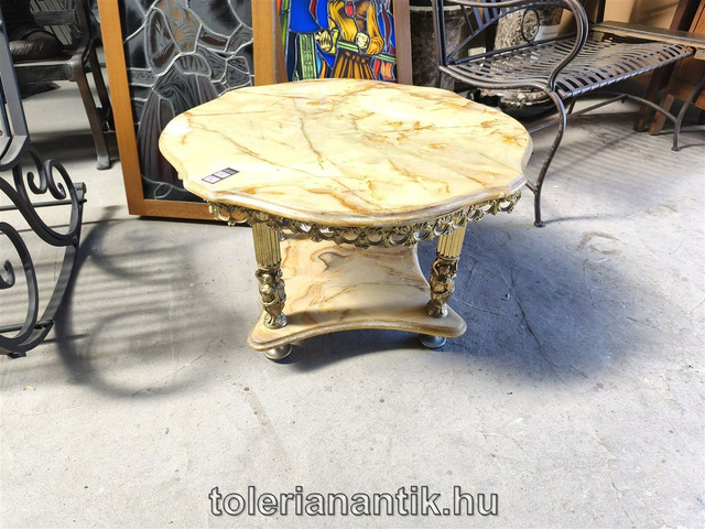 Ár kérésre! Kerek rézoszlopos márványlapos dohányzó asztal Vác