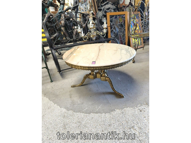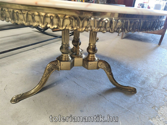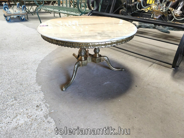 Ár kérésre! Neobarokk háromlábú márványlapos réz dohányzó asztal Vác