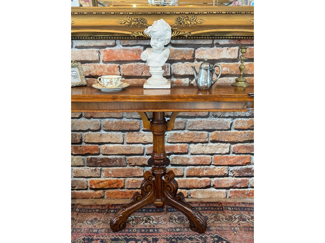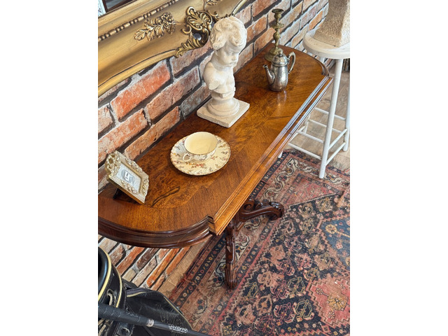 Frissen felújított, restaurált, kézi politúrozású konzol asztal.