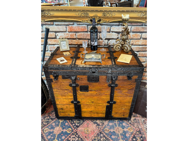 Frissen felújított, restaurált, kézi politúrozású utazó láda.
