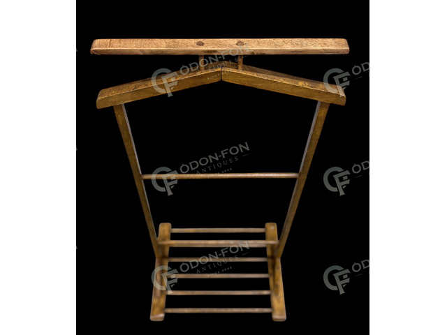 Valet stand: Around 1930–40. Beechwood with polished surface finish. In good condition.