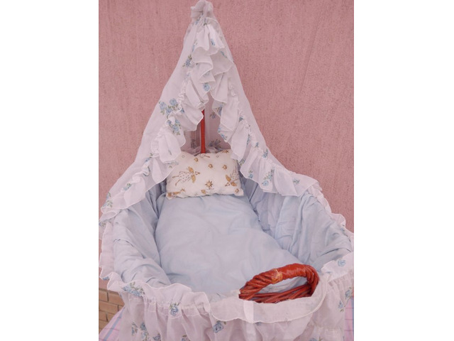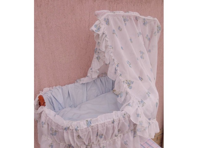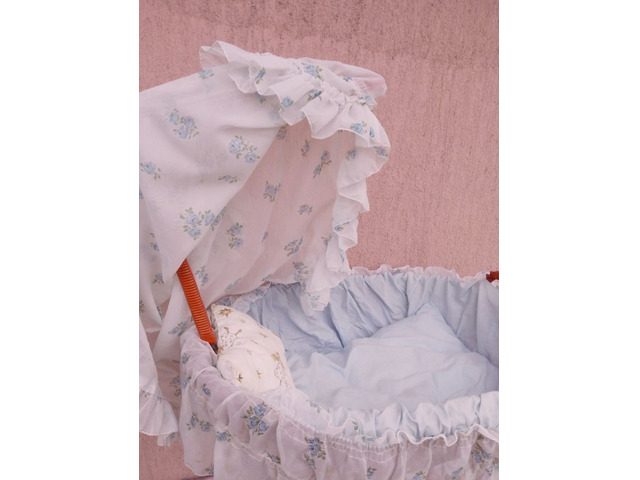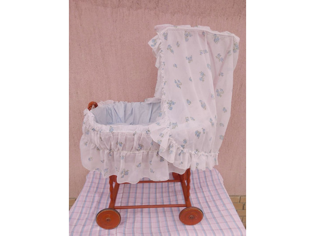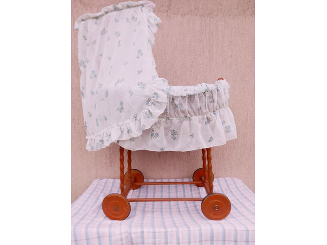 Valamikor az 1950-1960-es években készülhetett. Hibátlan állapotban van, tökéletes kézműves vázszerkezettel, újszerű ágyneművel, gumiabroncsos gördülő kerekekkel, nagy méretű, és erős kosárral, amelyben egy 50-70cm hosszú kisbaba teljes kényelemben elhelyezhető. A képen látható szép, patinás állapotban postázom, akár azonnal használatba vehető, vagy kiállítható.