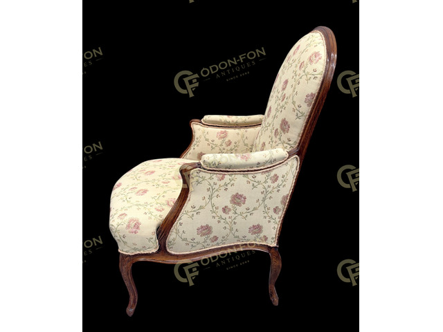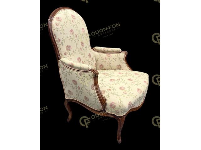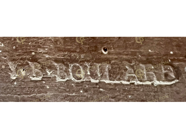 Jean Baptiste Boullard fotel: 1760 körül. XV. Lajos stílusában. Barokk stílusban, volutás faragású bükkfa. Teljes szerkezetében felújított, egyes részek kiváltásra kerültek, a mindennapi biztonságos használatának érdekében. Politúrozott felületkezeléssel, archaikus kárpitozással. Sodrott zsinóros bortnival. Jelezve a fotel belsejében a hátsó összekötő belsejében nyomott bélyegző: „J.B. BOULARD”. Muzeális darab.