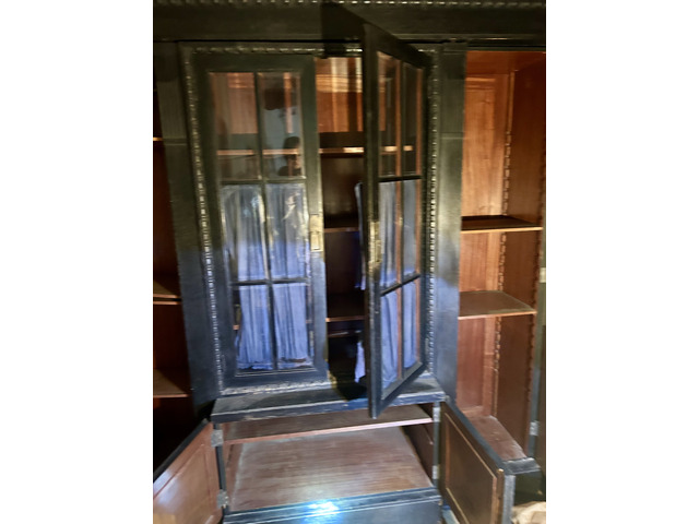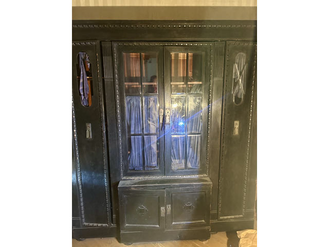 Eladó egy nagyméretű, impozáns, feltehetően 1910–1930 közötti vitrines és akasztós szekrény.