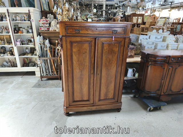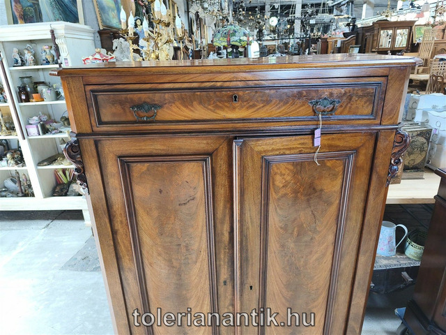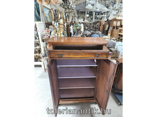 Neobrokk kétajtós polcos kis szekrény két fiókkalAntik szekrény - Vác (Pest megye) - 2026/04/16 Ár kérésre!Jó állapotú Mérete:94x50x130