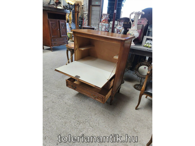 Kozma Lajos tervezésű illatszeres szekrénykeAntik szekrény - Vác (Pest megye) - 2026/04/04 999.000 Ft470/260328/20/ARB Kozma Lajos tervezésű illatszeres szekrényke: 1925 körül. Bükkfa alapon, zöld festéssel, aranyozott élekkel, öntött sárgaréz fogantyúkkal és veretekkel. Minőségileg felújított állapotban. Méret: 83,5 x 49 x 40 cm Irodalom: Koós Judi...