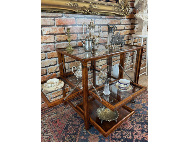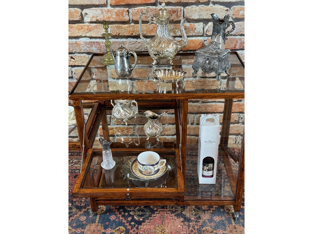 Frissen felújított, restaurált, kézi politúrozású zsúrkocsi