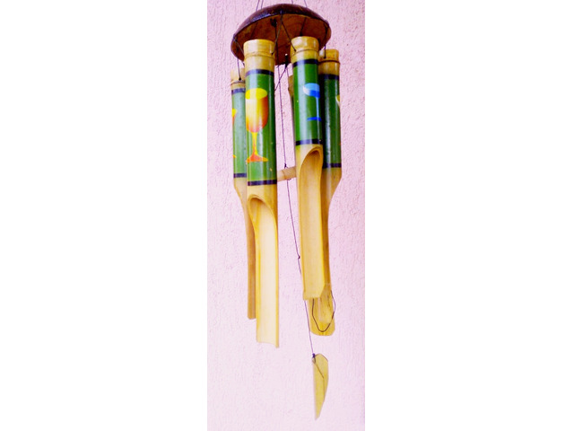 6.000 Ft Bambusz szélcsengő vagy belépés jelző festett koktélos dekorációval Malájziából Tiszaföldvár