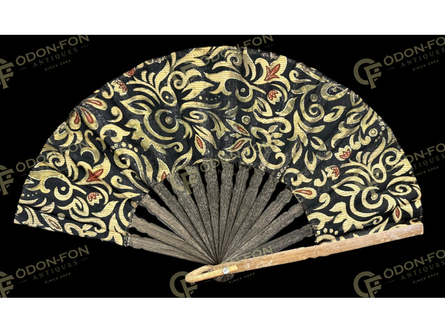 Ornamentális dekorációs legyező fekete fa pálcákkal: 20.sz. vége. Életszerű, jó állapotban.