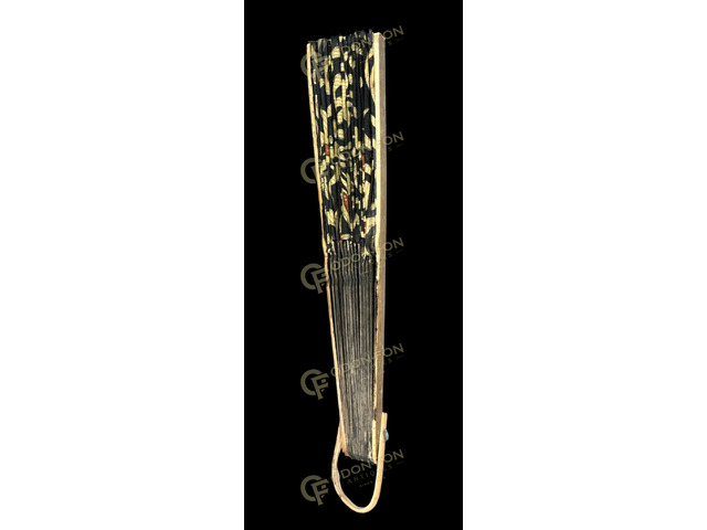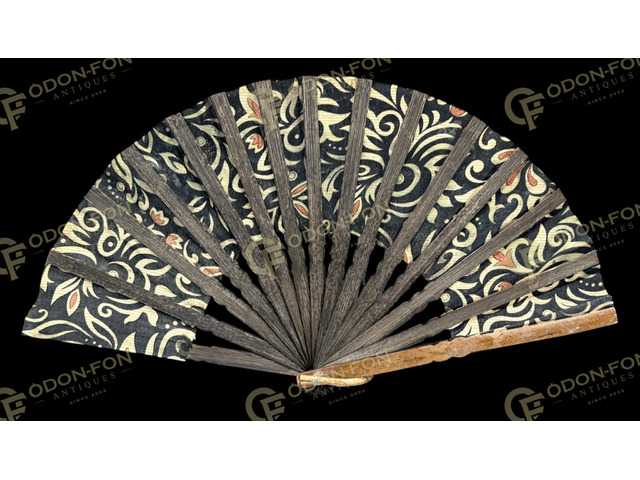 Ornamental decorative fan with black wooden sticks: Late 20th century. Realistic, in good condition.