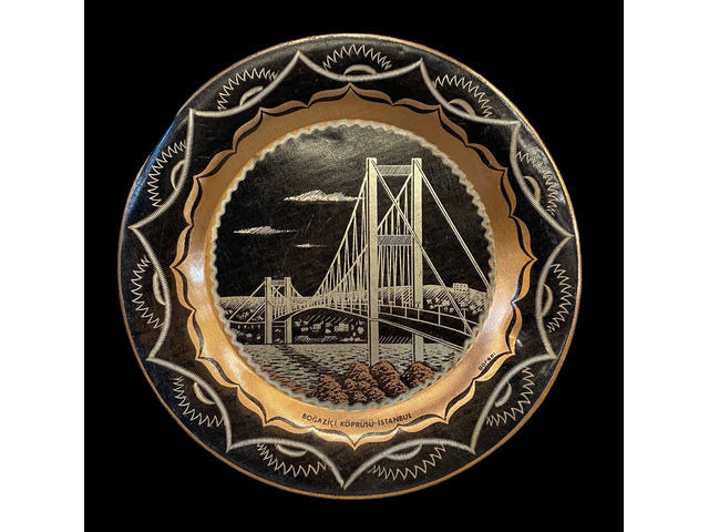 Istambul wall plate: late 20th c. Decorated copper. Good condition.