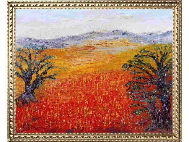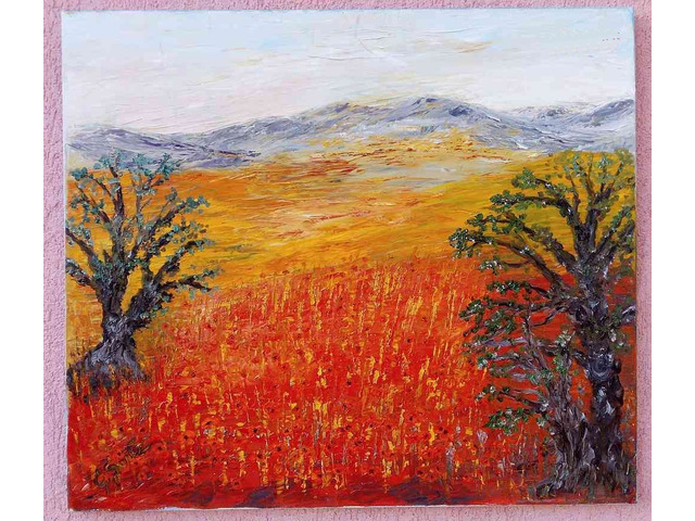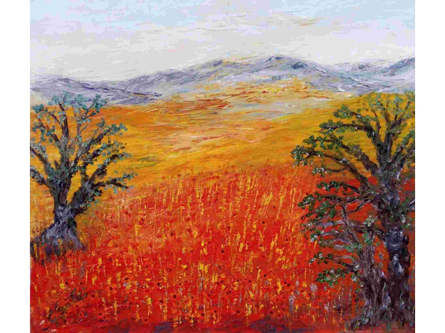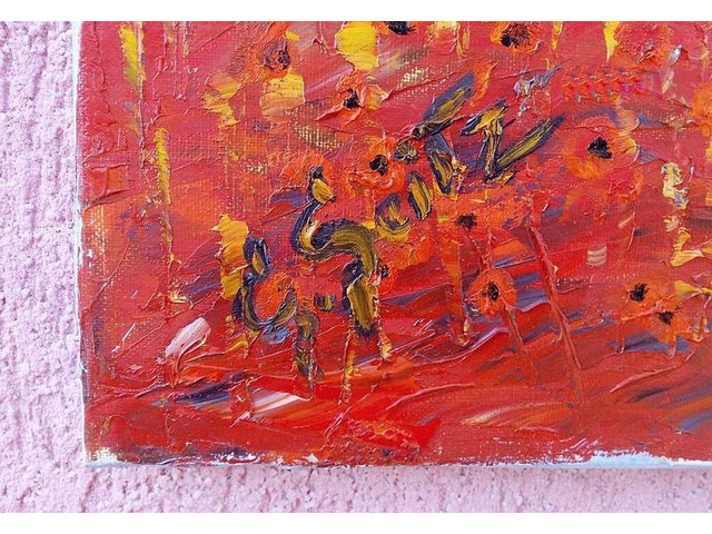 49.000 Ft Kortárs műtárgy olajfestmény. Pipacsos mező akáciákkal. Gustav Seitz alkotása Tiszaföldvár