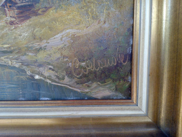 Valamikor az 1920-1930-s években készülhetett. Naturalista stílusú, vastagon spaklival felhordott festéssel, látványos, és hangulatos témával. A szignót nem tudtam megfejteni, de a művész tudása megkérdőjelezhetetlen. A képen látható szép, patinás állapotban postázom, akár azonnal használatba vehető, vagy kiállítható.