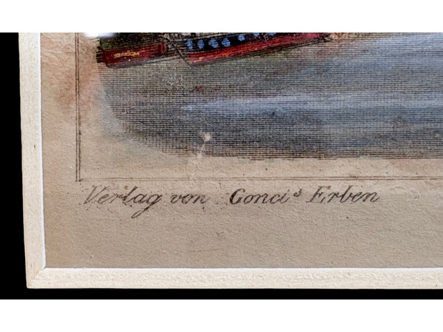 Alajos Fuchsthaller – Pest and Buda with the Chain Bridge: Around 1855. Gonci & Erben. Beautifully coloured steel engraving. Matted and framed.