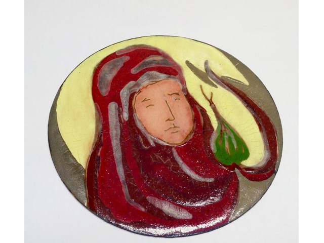 12.000 Ft Kortárs műtárgy: Madonna, tűzzománc festmény kör alakú réz lemezen Tiszaföldvár
