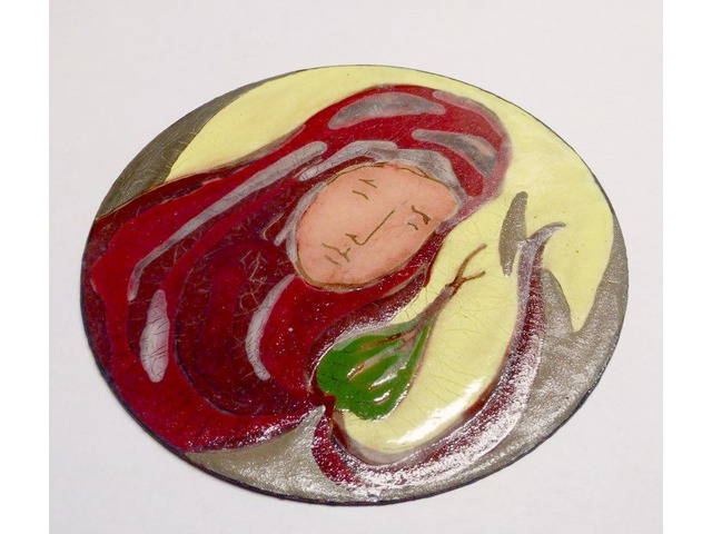 Modern művészi zománcműves tárgyak gyűjteményébe. Igényes vallásos kép!
