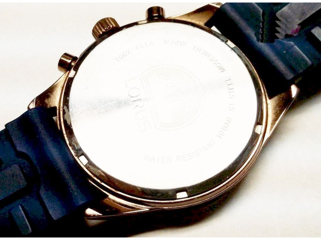 Fekete számlapján letisztult rakott indexekkel, fehér fluorestkáló mutatókkal, központi másodperc körrel, Különálló három körös naptárral minőségi Japán kvarc szerkezettel. Vastag akár 22cm átmérőjű csuklóra is alkalmas szilikon szíjjal. Csiszolt karcmentes edzett üveggel. 100m mélységig vízálló. A hátlapon LORUS LOGÓ, Japan movement, Water resistant 10 bar, Stainless steel back, és No: VX9J-X002 sorozatszám. A képeken látható kifogástalanul, és pontosan működő állapotban. Elsősorban férfiak számára ajánlott elegáns viselet lehet. Gyűjteménybe, klasszikus hétköznapi viselethez, és ajándékozási célra is kiváló választás.