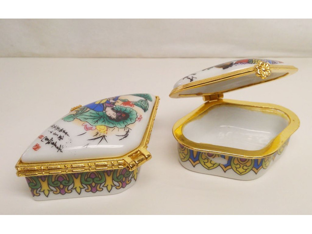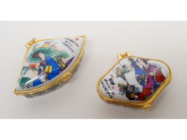 5.000 Ft Porcelán szelence pár, gésákkal gyűrűknek, medálnak, láncnak Tiszaföldvár