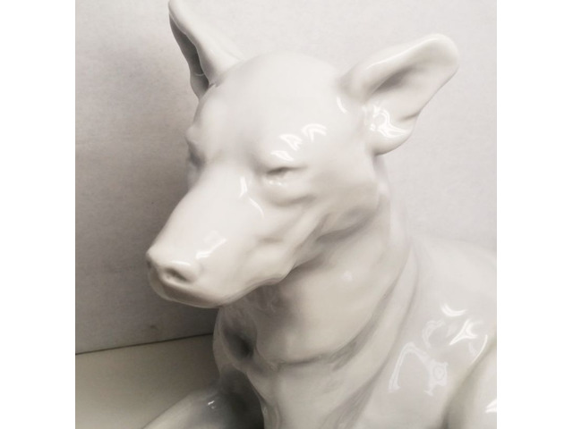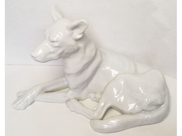 Fehér mázas németjuhász figura.