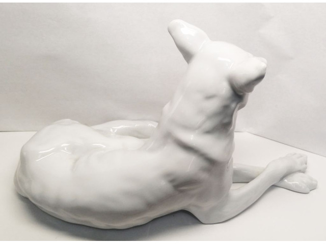 29.900 Ft Herendi nagy méretű fekvő kutya porcelán figura, fehér mázas, jelzett számozott Tiszaföldvár