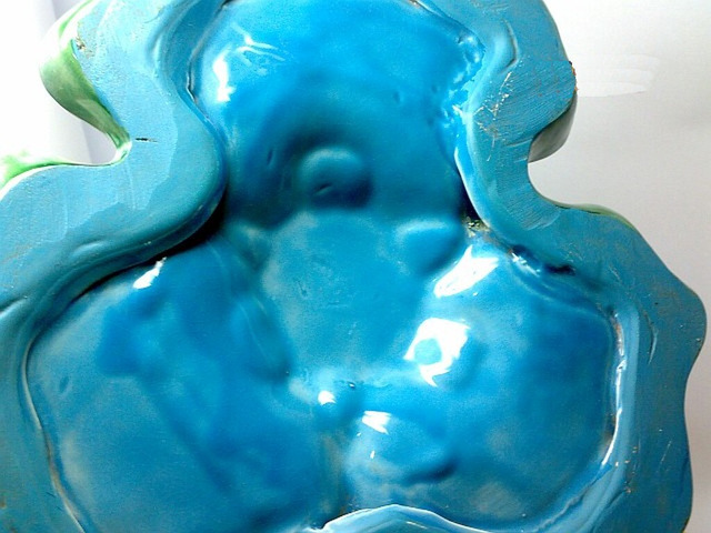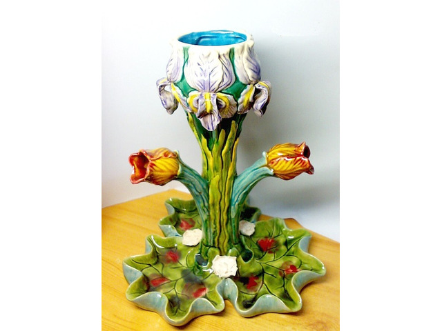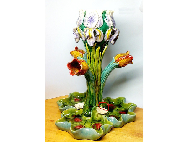 Minden porcikája a keramikus mester munkáját dicséri. Egyedi hangsúlyos rikító színekkel, és a virágok természetes színeivel kombináló műtárgy.