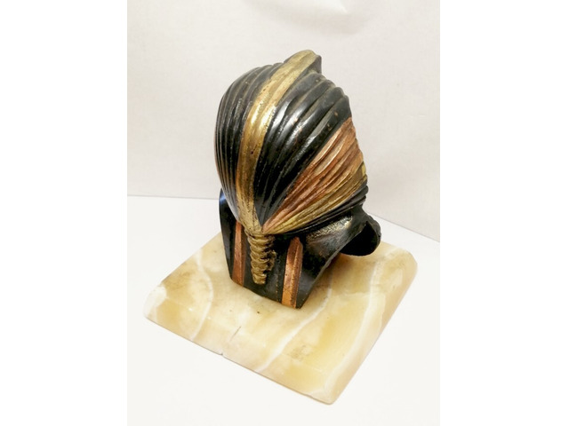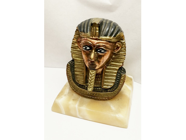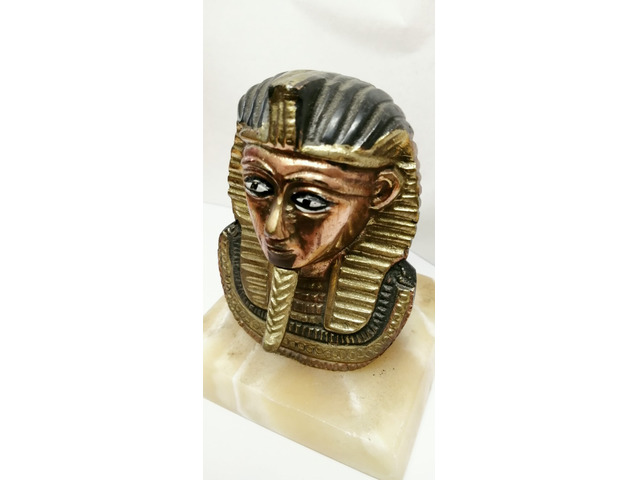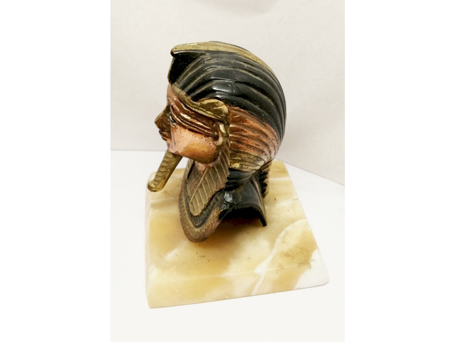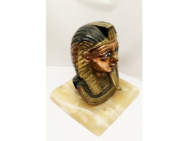 16.000 Ft Tutanhamon Fáraó, bronz mellszobra kisplasztika, sárgás Ónix talapzaton Tiszaföldvár