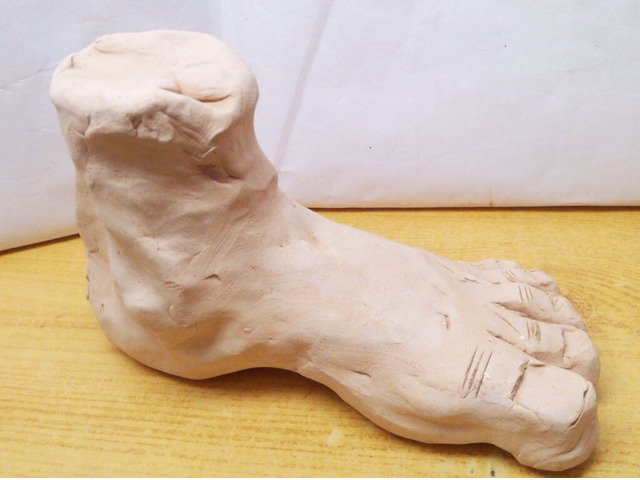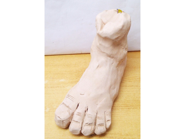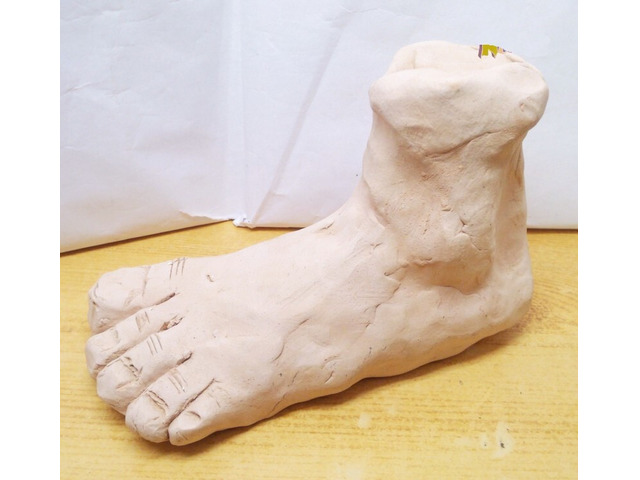 Tömör égetett agyagból formázott lábfej, ismeretlen művész alkotása.