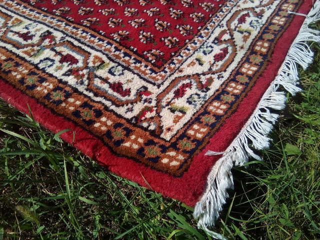 A BIDJAR SZŐNYEGEK:A BIDJAR SZŐNYEGEK: Bidjar egy kis kurd város neve Irán nyugati részén. A kurd szőnyegek gyakran nagyon erősek és kompaktak, ami rendkívül tartóssá teszi őket. A Bidjar név sok szőnyegszakember számára a tartósságot jelöli. A takácsok nehéz, fémből és fából készült fésűjükkel verik a vetüléket és a csomókat, így erős, strapabíró felületet kapnak. A szőnyeg felülete ezért nagyon tömör lesz, ami megakadályozza, hogy a kavics és más apró részecskék a szőnyegbe nyomódjanak. A szőnyegek török csomókkal készülnek, és általában vörösek és kékek, bézs elemekkel. A leggyakoribb minta a Herati (más néven halminta), de medalionok és virágmotívumok is előfordulnak. Józan eleganciájuk van, és a legtöbb környezethez alkalmazkodnak.