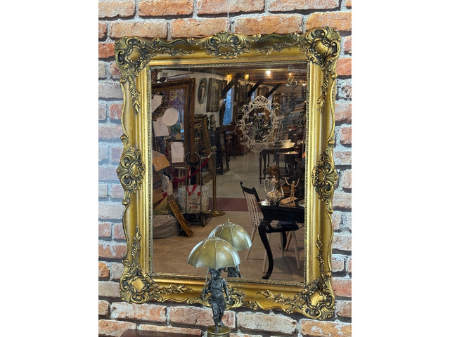 Aranyozott Blondel Tükör 01.Antik, Régi falitükör - Sződ (Pest megye) - 2026/02/26 52.000 FtAranyozott Blondel Tükör 01. Kitűnő állapotú aranyozott keret. Fekvő vagy állón is elhelyezhető. Dúsan díszített faragott mintával. Új tükörrel felszerelt. Hátulján akasztóval felszerelt. Méretei: 72x92cm magas. Ára: 52,000Ft.-