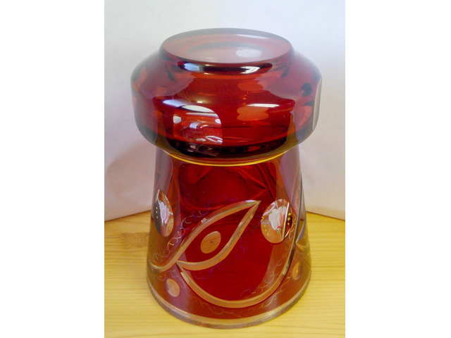 Különleges, kellemes színvilágú ritkaság, a Cseh Bohemia kézműves ipar remekműve. Otthonos hangulatú díszműtárgy. A képeken látható hibátlan állapot, a korát meghazudtoló megbecsülésről tanúskodik. Ajánlom gyűjteménybe, kiállítási célra, vagy a lakásod díszeként.