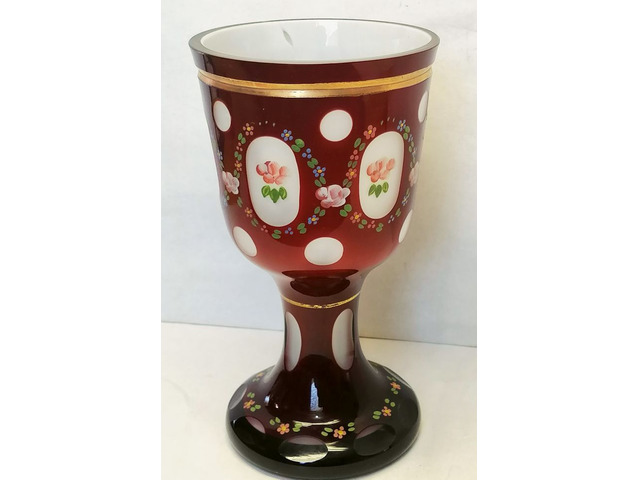 6.000 Ft BOHEMIA bordó, stílusos, medalionos pohár biedermeier stílusban, apró hibával Tiszaföldvár