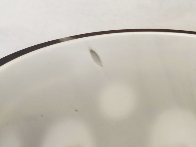 Sajnos van rajta némi apró gyártási hiba a belső felén, és egy pici buborékosodás a talapzatán, ami viszont az üveg falában maradt.