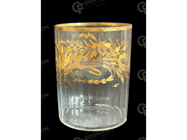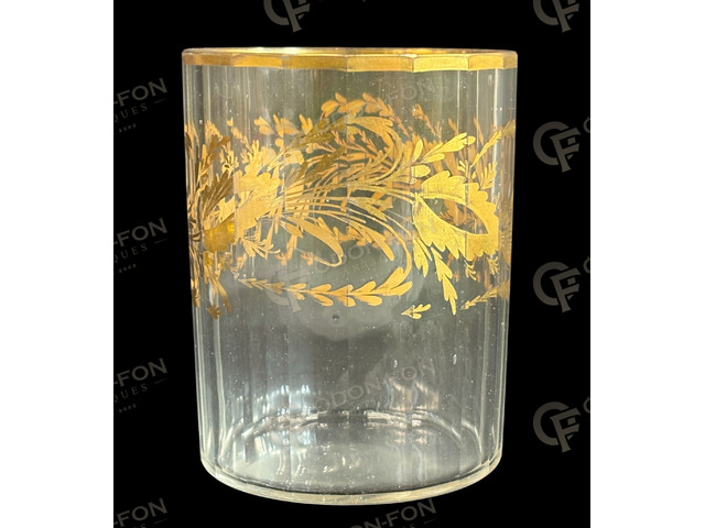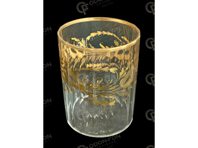 Neoclassical glass: Second half to end of the 18th century. Blown glass with cut (ground) sides, with gilded painted decoration and rim. In nice condition.