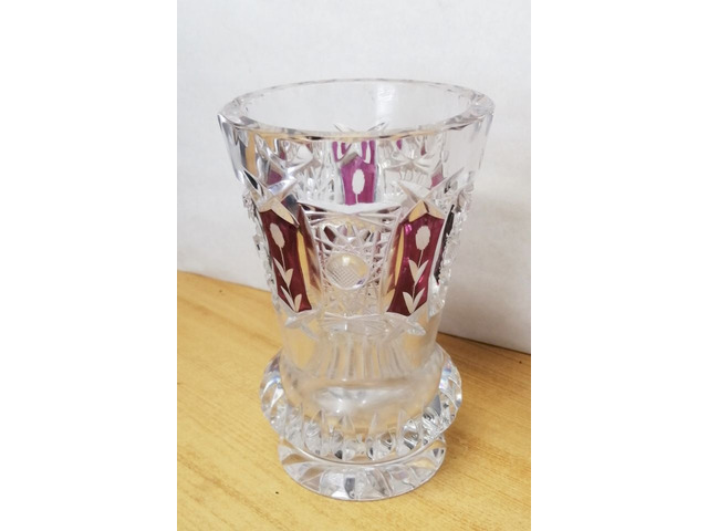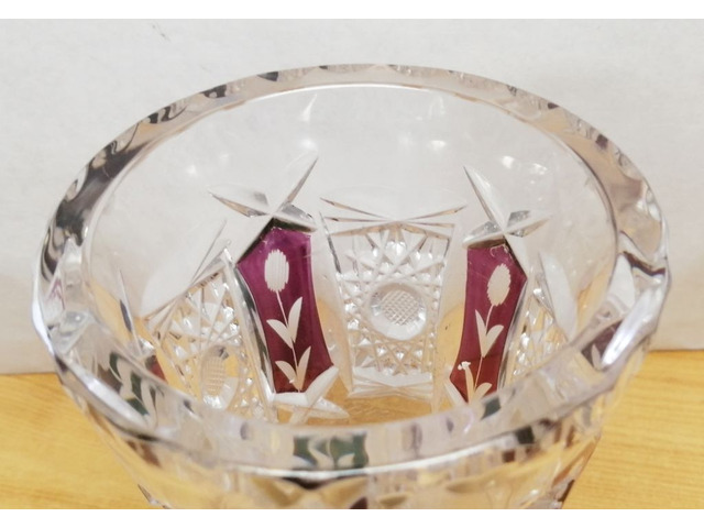 Jellegzetes a gyártóra jellemző minőségi kristály rubinvörös színnel kontúrozott mintázattal.