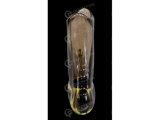 Borostyán váza: Murano, 1980 körül. Színtelen–borostyán üveg. Jó állapotban.