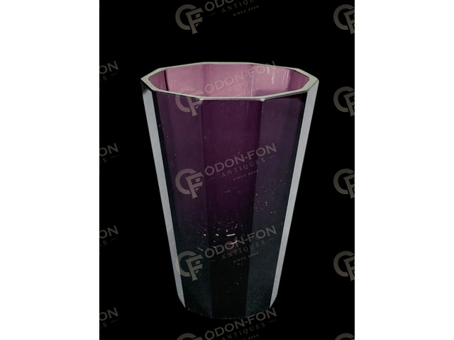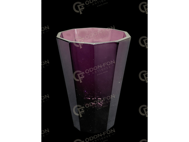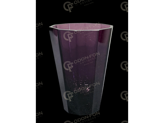 Purple violet vase: 20th century. Conical, faceted glass. In good condition.
