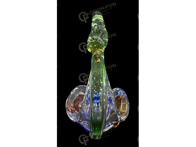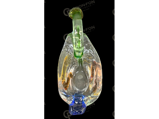 Hattyú alakú kínáló: Fúvott, melegen alakított színes üveg a Rhapsody sorozatból. Modellőr: Frantisek Zemek. Cseh, 1960-as évek, Sklarna Mstisov.