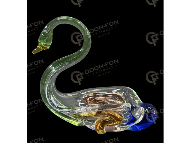 Swan-shaped serving dish: Blown, hot-shaped colored glass from the Rhapsody series. Designer: Frantisek Zemek. Czech, 1960s, Sklarna Mstisov.