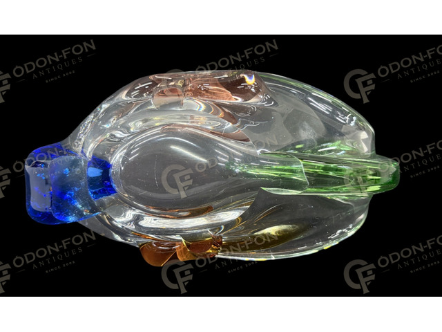 Schwanenförmige Servierschale: Geblasenes, heiß geformtes farbiges Glas aus der Serie „Rhapsody“. Entwurf: Frantisek Zemek. Tschechisch, 1960er Jahre, Sklarna Mstisov.
